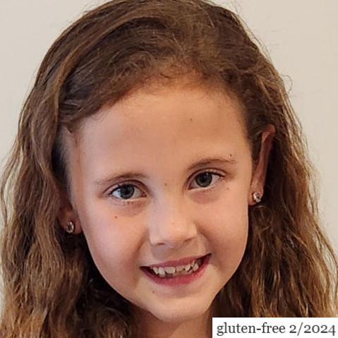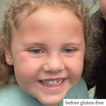 She did really well until a few months ago when she started sneaking foods that she thought were gluten-free but clearly weren’t. I would ask her if she ate anything she shouldn’t have, and she’d say “no,” but I could tell there was a difference. I first noticed that her speech was sometimes not as clear. As the days and weeks passed, I noticed her face start to swell, especially around her eyes. She has complained about her legs hurting and not wanting to run. She doesn’t have eczema or hair loss, but you can notice how her sneaking hidden gluten foods has affected her.